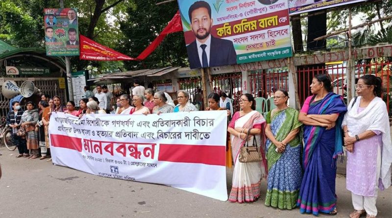খাগড়াছড়িতে কিশোরী ধর্ষণ ও প্রতিবাদকারীদের ওপর হামলার প্রতিবাদে মহিলা পরিষদের মানববন্ধন