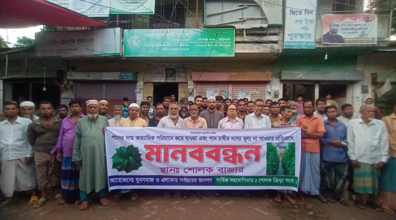 Read More(সিনিয়র রিপোর্টার, সোয়েব সিকদার) -বরিশালের উজিরপুরের ঐতিহ্যবাহী শোলক গ্রামে আজ বিকেলে স্থানীয় যুব সমাজ ও এলাকাবাসী পানের দাম কমে যাওয়ায়